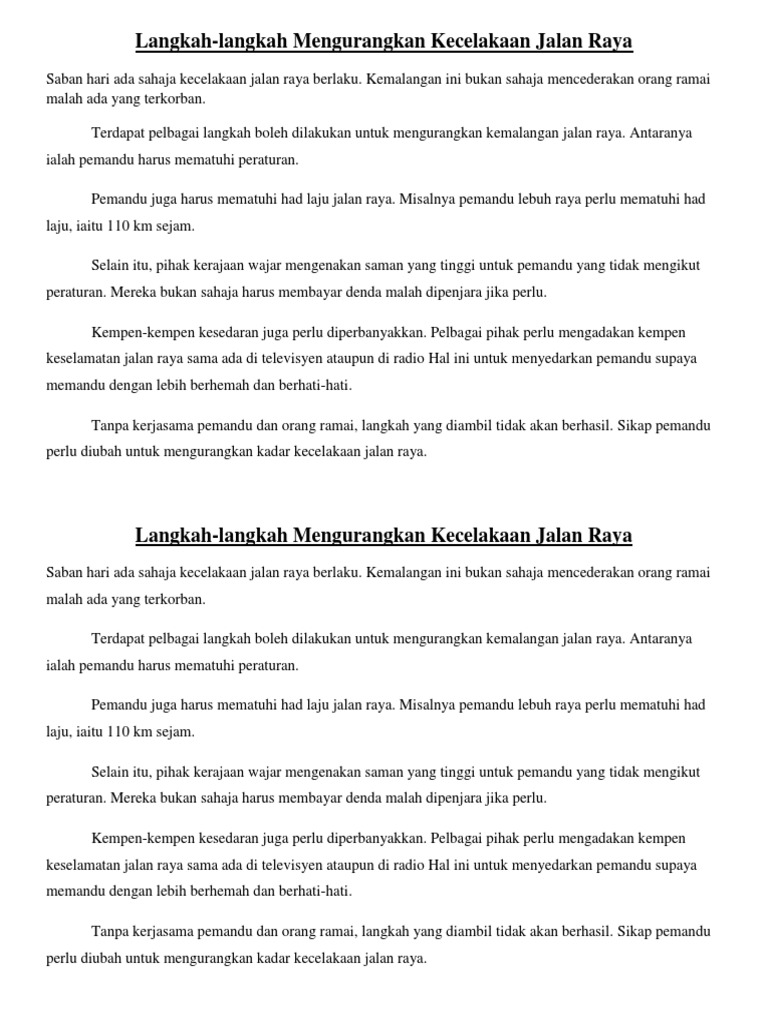 Karangan Docx Langkah Langkah Mengurangkan Kemalangan Jalan Raya Langkah Yang Boleh Dilakukan Untuk Mengurangkan Kemalangan Jalan Raya Adalah Dengan Course Hero